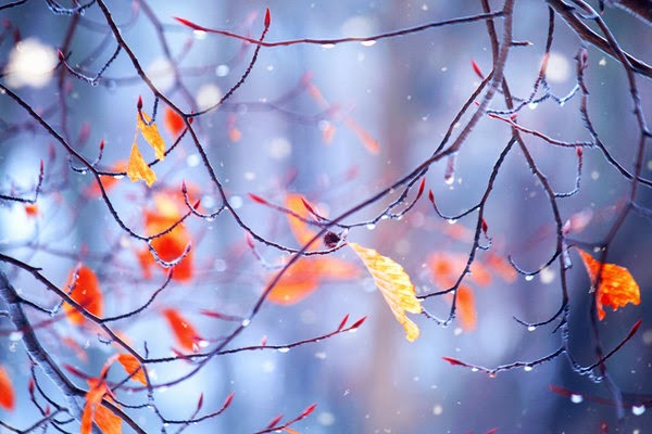 Rain drips cold from tree branches.
