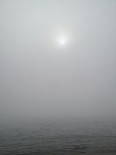 Fog entombs the shore
