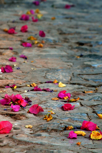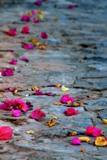 Petals scattered on a path.