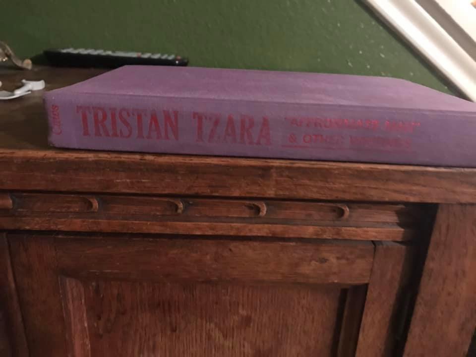 Several weeks ago something made me think about rereading Tristan Tzara’s “Approximate Man.” I searched every bookcase in the house multiple times( yes, I am obsessive). I couldn’t find it. I knew I had not loaned it out… I mean who do I know that would want to read it? Then yesterday, from across the room, I spotted it on the shelf in plain sight. I figure a ghost, or old age.