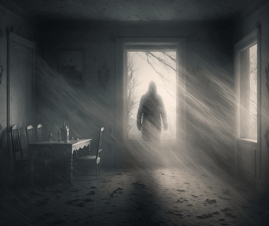 a dark figure in a black hooded-cloak